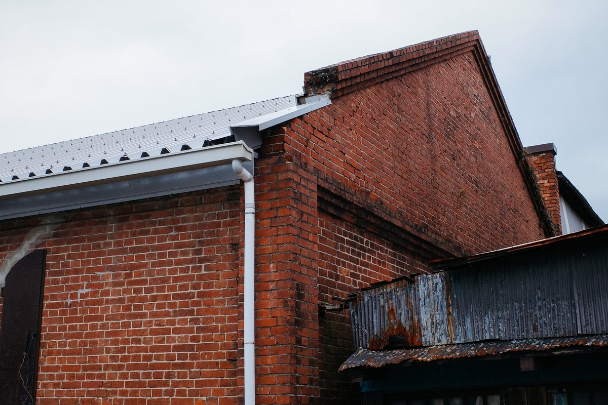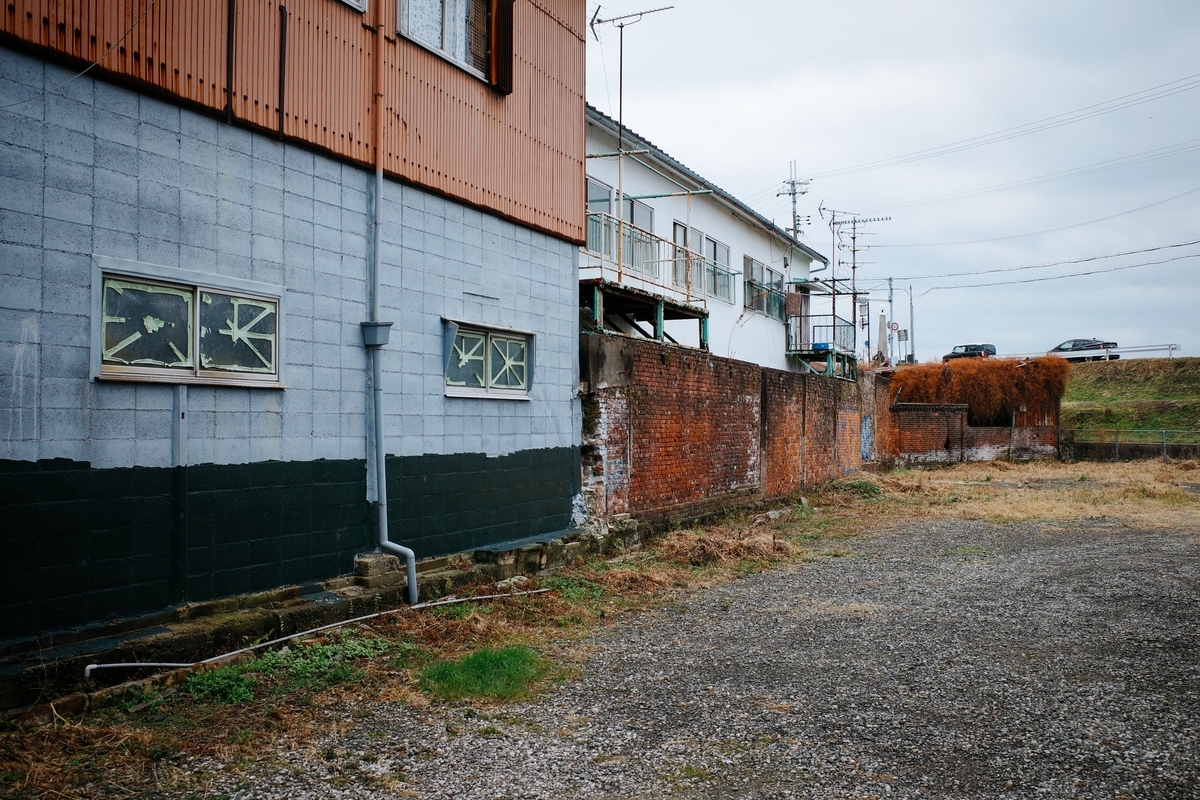 土手にあがるまでの道中に、またもやレンガ造りの建物が残っています。
