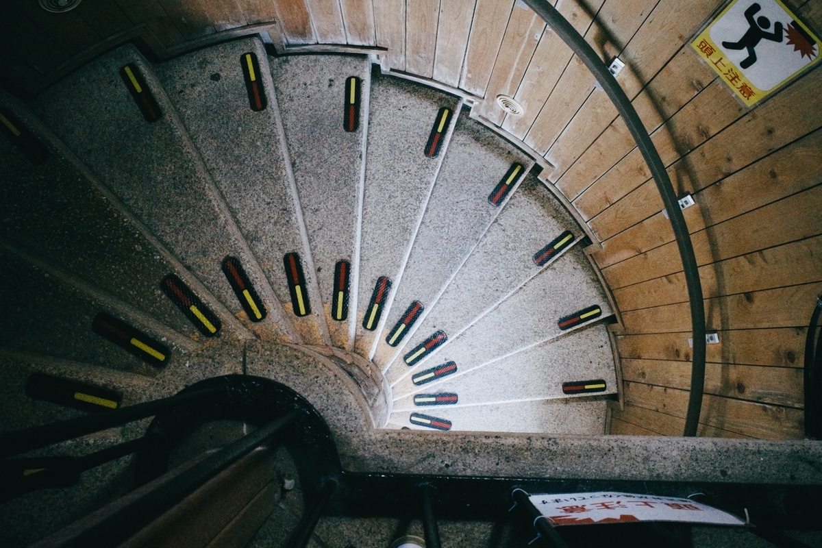 このように68段の螺旋階段をグルグルと回りながら上を目指します。