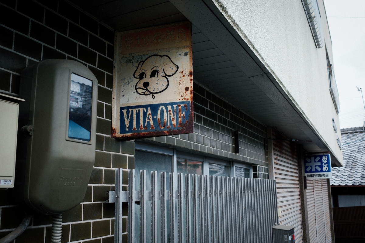 日本初の国産ドッグフードを作ったビタワンの看板。