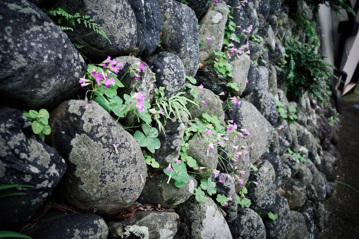 土地を水平にするために石垣が積まれている所がちょこちょこ見られる