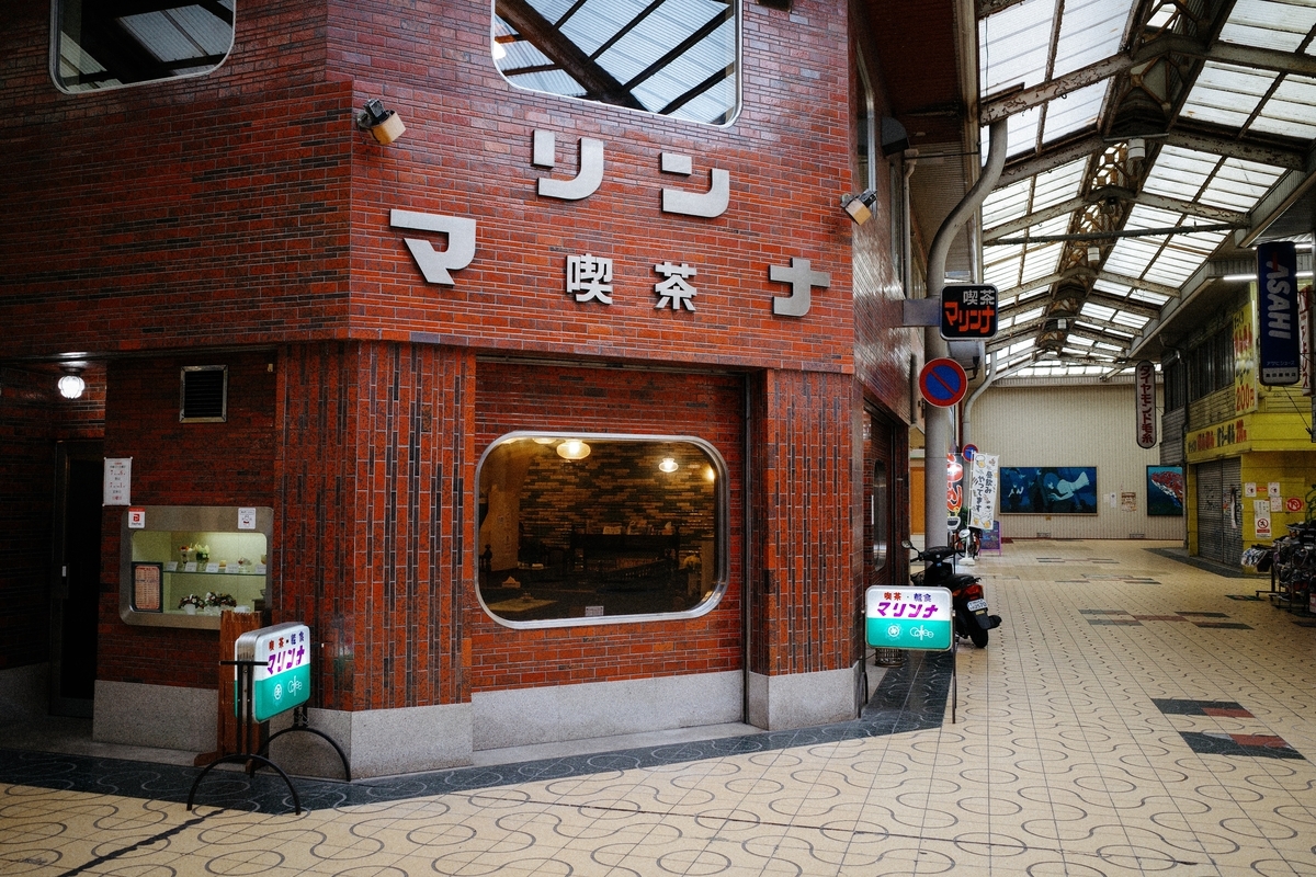 シャッターがおりた店が目立ちはするが、当時の看板や営業時の名残、今なお営業を続けるレトロ店舗。