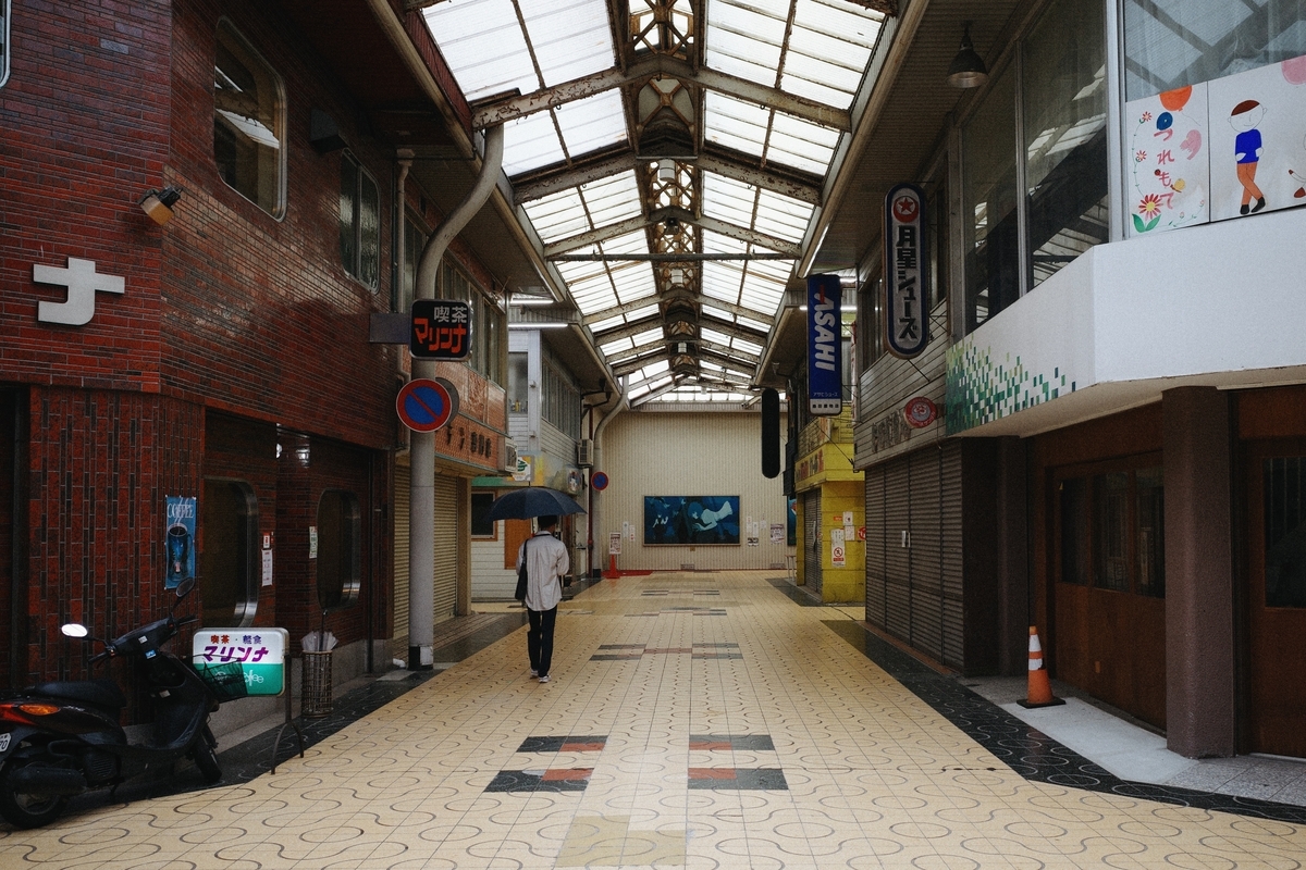 雨の日でも撮影できるアーケード商店街はありがたい。