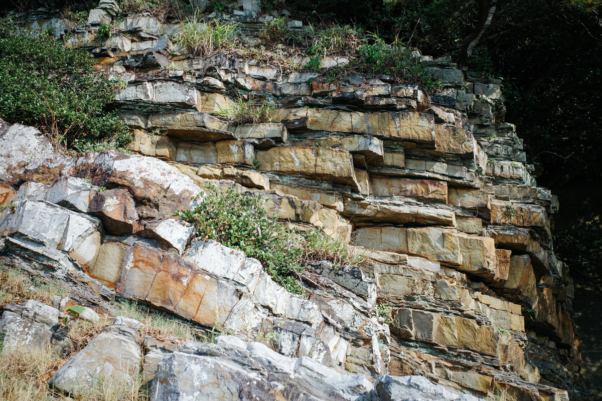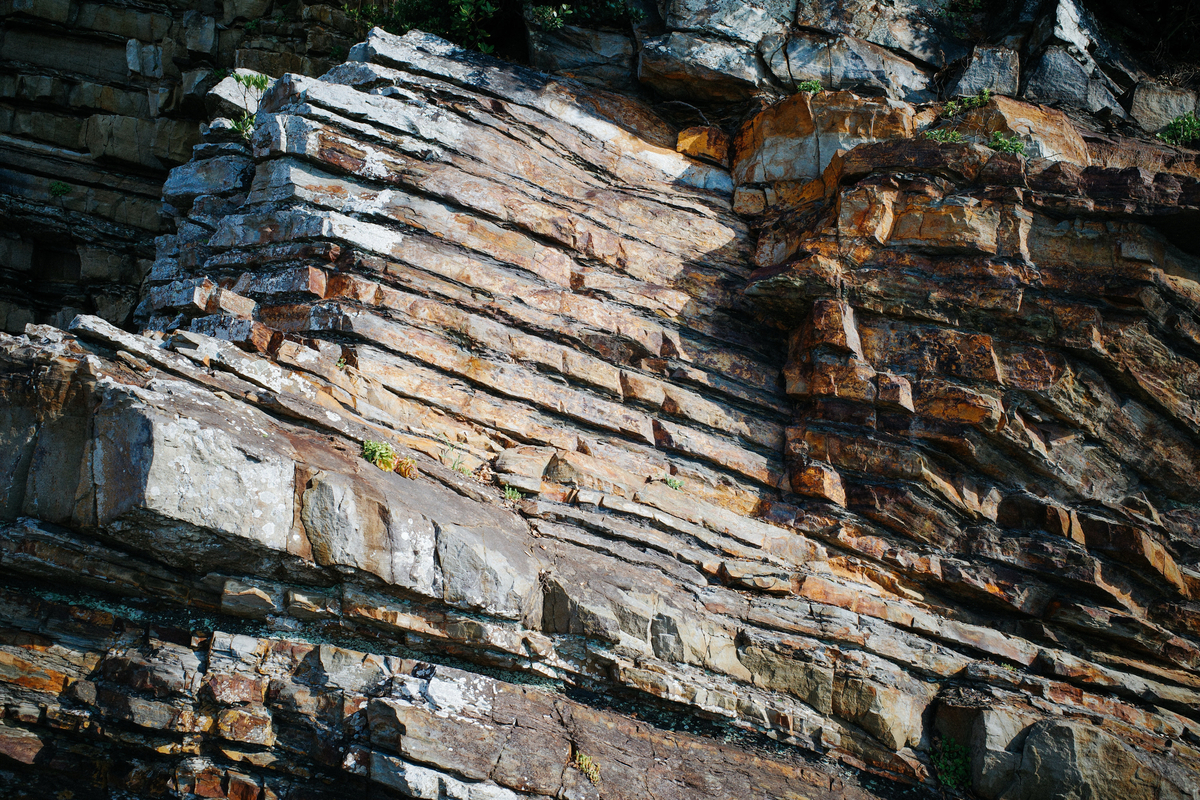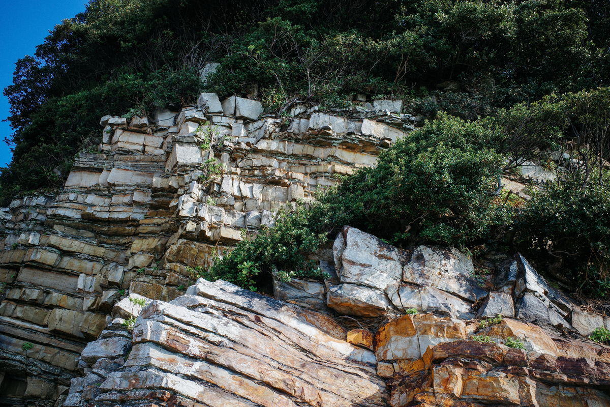色や厚さの違う岩の層が、幾重にも重なっているのがわかるでしょうか。