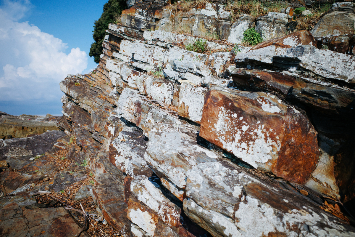 ジオパークの縞模様の岩壁を目指し歩く際の注意点