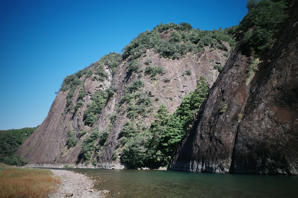 古座川の一枚岩は、高さ約100m・幅約500mという圧倒的なスケールを誇り、国の天然記念物にも指定されています。川沿いの道から見上げると、まるで大きな屏風がそびえ立つような迫力。四季折々の景色とあいまって、その雄大さに思わず息をのむはずです。